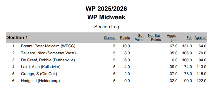 WP League Results